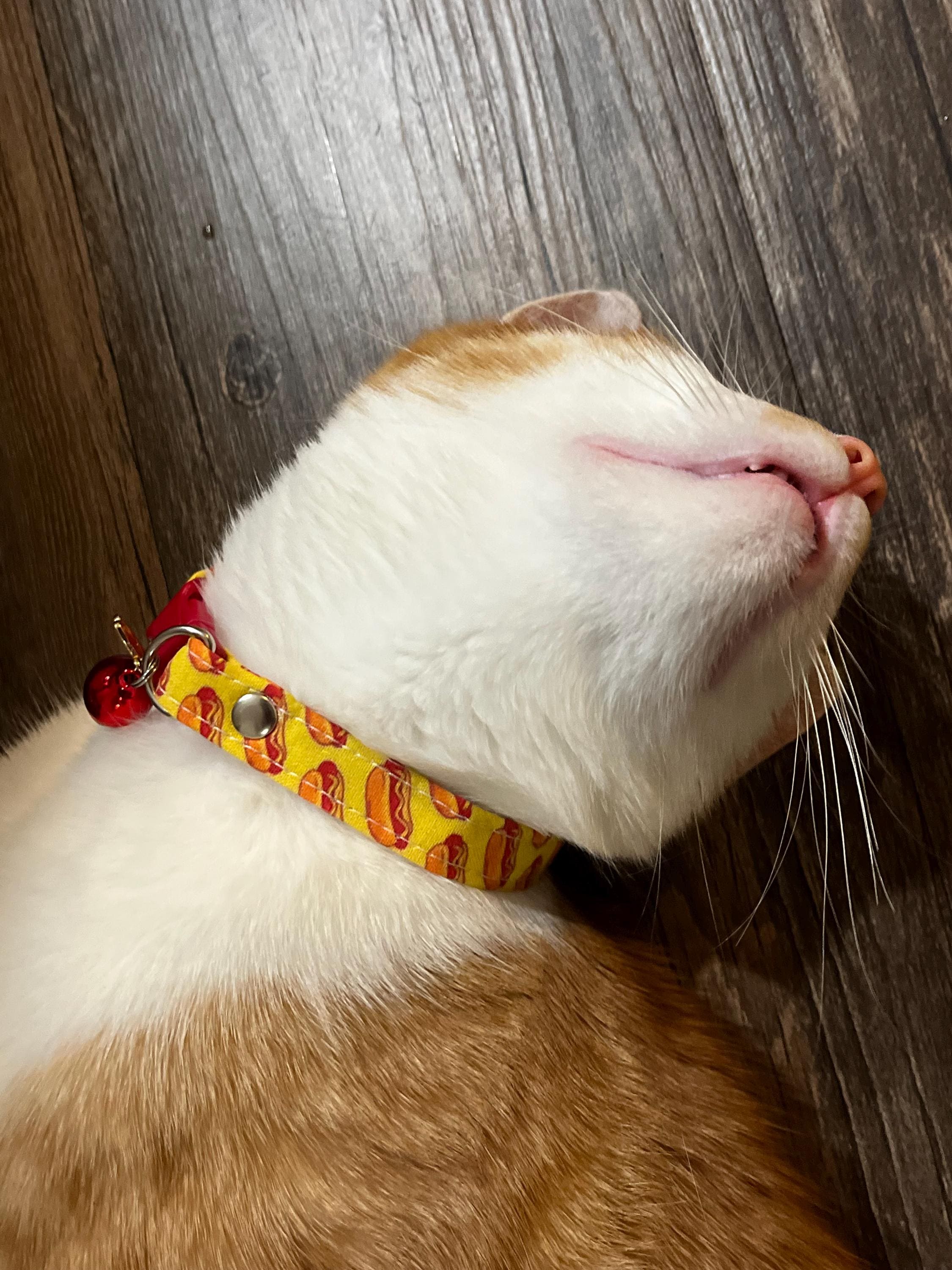 Very cute and great quality! I plan on buying another for my other cat. My cat's name is Mustard and it was a great collar for his silly name