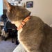 -Measure around your cats neck, keeping the tape measure loose enough to fit 2-3 fingers underneath. Our standard collars adjust from about 7.5'' to 12''