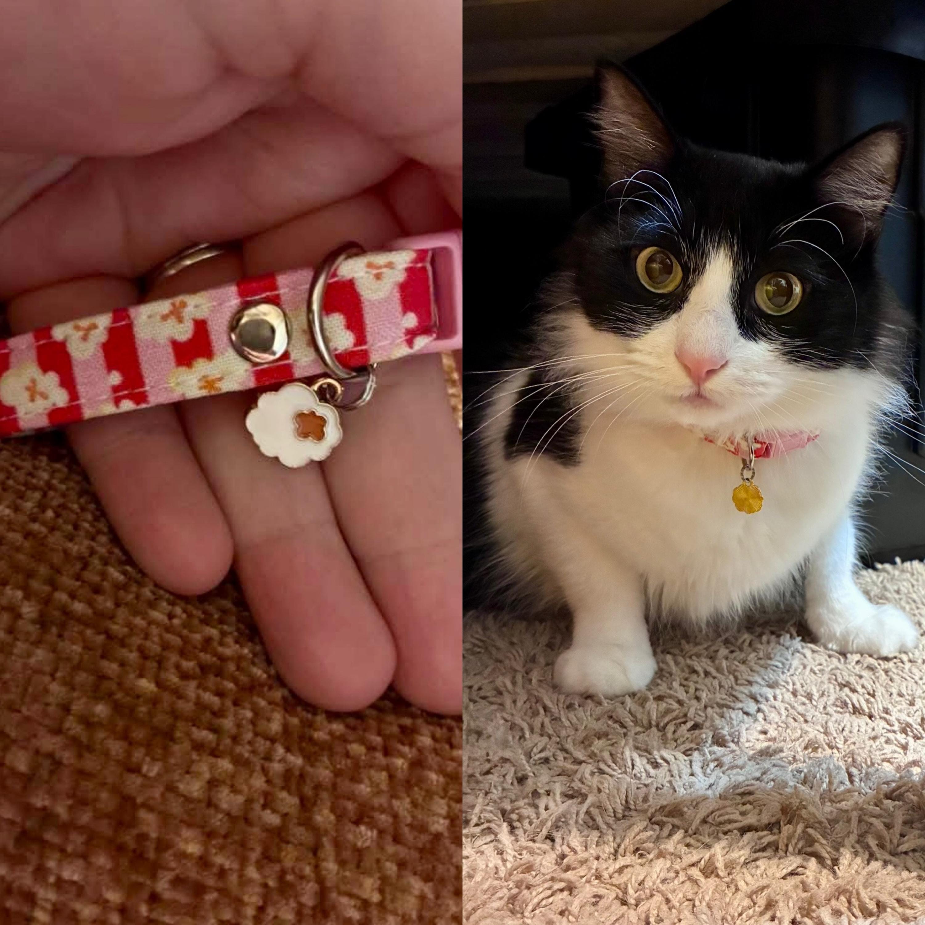 My son got a cat for his 11th birthday and named her Popcorn, or Poppy for short. We found this movie night collar with popcorn print and charm, and it was absolutely perfect for our new family member. In person, the colors are great and the print on the collar is so clear. The charm is the cutest embellishment!