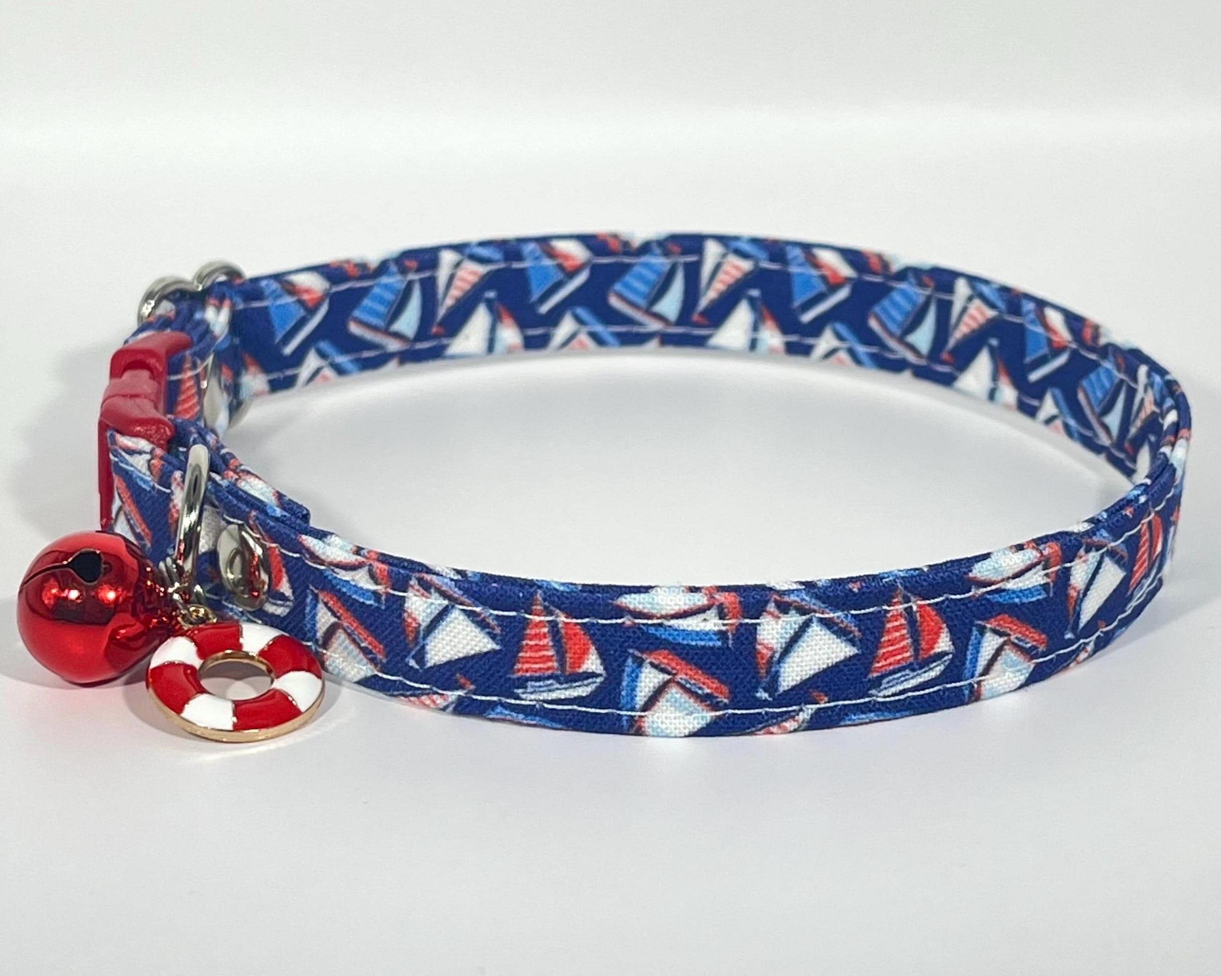 Cat Collar- “Sailboats” Adjustable Breakaway Collar